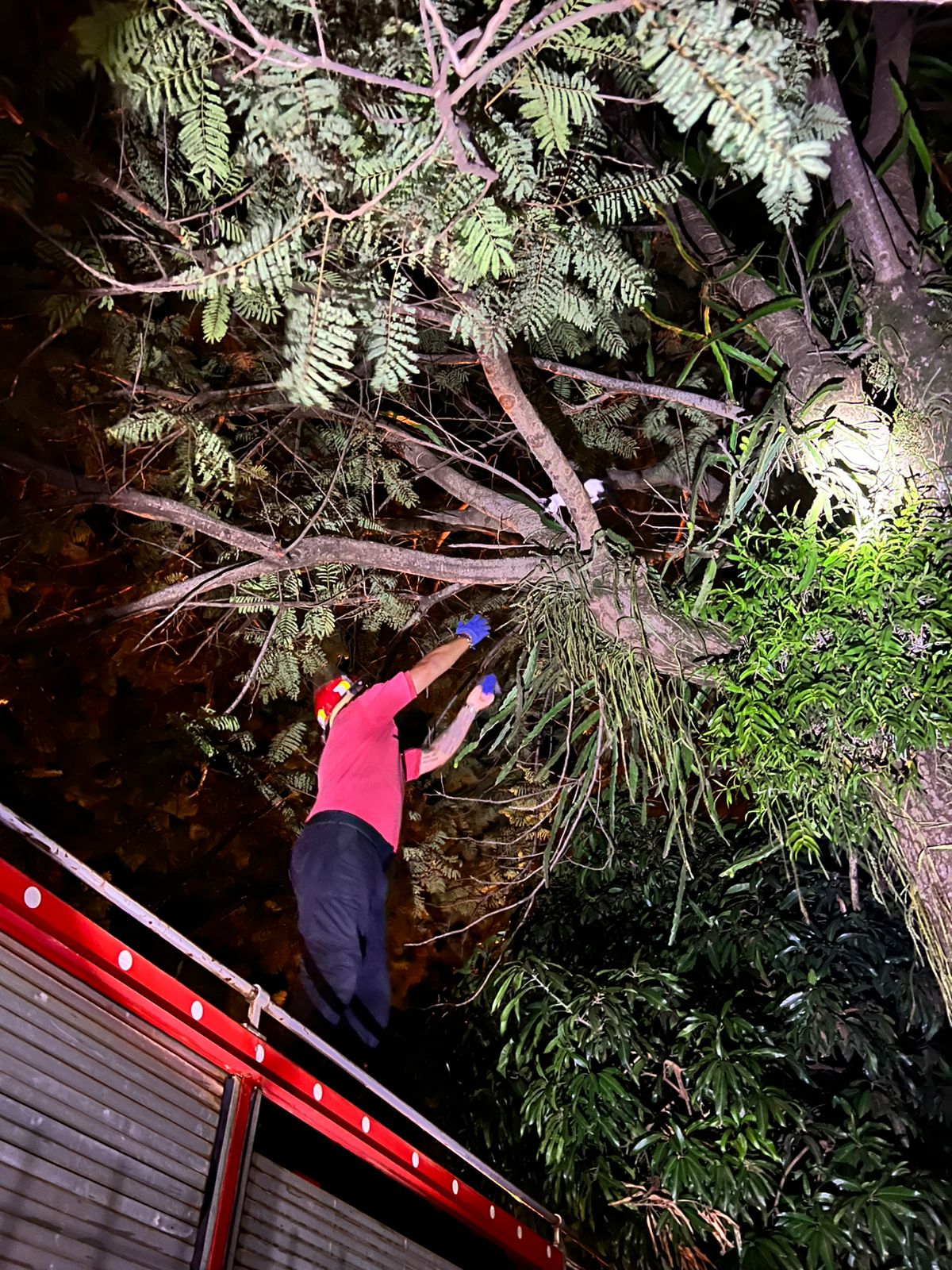 El animal había quedado atrapado en la copa de un árbol de gran porte en Garupá. Bomberos realizaron un operativo en altura para rescatarlo y lograron bajarlo sin lesiones, entregándolo nuevamente a su propietaria