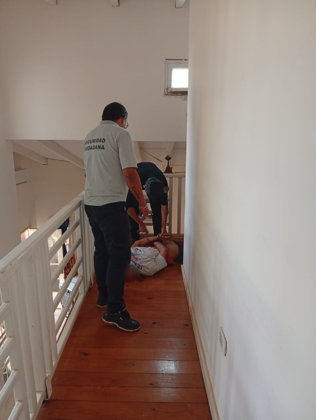 Durante la inspección, los uniformados encontraron al sospechoso dormido dentro del edificio, por lo que debieron despertarlo para proceder a su detención.