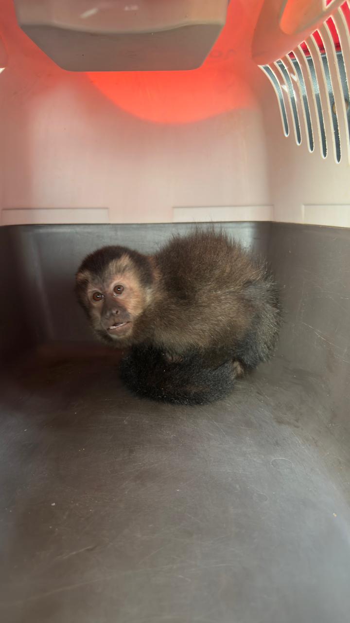 Durante la intervención, los uniformados constataron que los involucrados transportaban en una caja de cartón un ejemplar macho de mono caí.